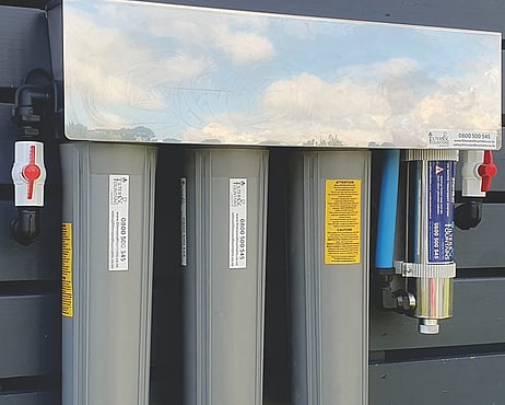 Twin housing 60 lpm UV with 20 micron and 1 micron filters.
